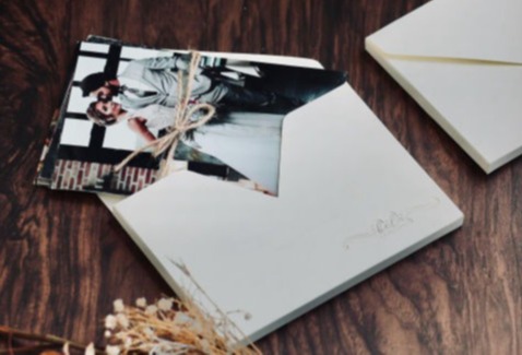 Envelope em forma de livro, com bolso para fotos no tamanho 10x15, 13x18 e 15x21