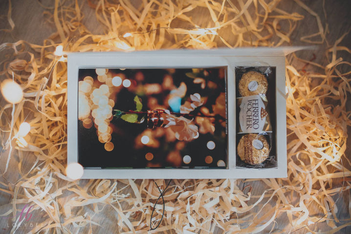 Caixa Ferrero Rocher c/ espaço para Pendrive e Fotos